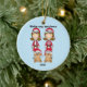 Isto será uma guardiã de todos os tempos! São duas senhoras adoráveis vestidas de roupas e chapéus de Papais noeis vermelhos. Tem um fundo azul claro. Há dois deuses ao lado deles. Personalize com nomes e um ano. Veja as outras combinações de família e ornamentos na nossa loja. ©JW Ilustrações