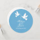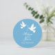 Duas pombas brancas simples e duplas com duas fitas azuis para convite de casamento. Projetado para um casamento formal hospedado pelo casal para casar. Personalizar com seus próprios detalhes contém linhas de texto RSVP.