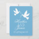 Duas pombas brancas simples e duplas com duas fitas azuis para convite de casamento. Projetado para um casamento formal hospedado pelo casal para casar. Personalizar com seus próprios detalhes contém detalhes de RSVP.