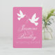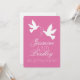 Uma pomba branca simples e dupla, com duas fitas cor-de-rosa, convite para casamento. Projetado para um casamento formal hospedado pelo casal para casar. Personalizar com seus próprios detalhes contém detalhes de RSVP.