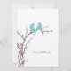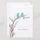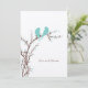 Este convite colorido do casamento de Kustom By Kris apresenta um par de pássaros lacustres brilhantes soltos num galho mocha com aqua e amoras mocha. Os nomes da noiva e do noivo são impressos na frente com os detalhes completos do evento impressos no verso.
