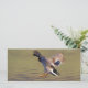 o pato-real macho chegando à terra numa manhã serena tranquila em março.
