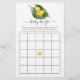 Primavera de bebê neutro em gêneros - Bingo de chá de fraldas páscoa com tipografia elegante escrita à mão, com um fraldo de pato giro numa lilly florescente do vale.