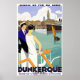Poster de viagens vintage de Dunquerque, França, totalmente restaurada. Observe que nossos posters são reproduções de alta qualidade baseadas em exames profissionais de alta resolução dos originais. Nosso processo de retoque manual não envolve o uso de filtros que removem qualquer detalhe ou textura original que você verá nos impressões originais. Todos os detalhes permanecem intactos. Cores corrigidas. Imperfeições removidas. Imagem cortesia da Biblioteca do Congresso.