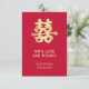 O caractere chinês "Dupla Felicidade" escrito xi ou "hsi" em mandarim e pronunciado "shuang-xi" é um caractere chinês bem conhecido usado tradicionalmente em casamentos chineses como um símbolo de amor, felicidade e sorte para o casal recém-casado. A cor vermelha é auspiciosa, além de ser uma cor popular na cultura chinesa. Ela simboliza sorte, felicidade e alegria. O uso de fontes contemporâneas completa o design. Um design verdadeiramente adequado para qualquer celebração de casamento chinês.
