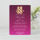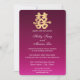 Este design apresenta o caráter auspicioso chinês de dupla felicidade em ouro falso contra uma matiz encantadora de vermelho marrom. O backer apresenta um fundo dourado falso. Perfeito para qualquer ocasião de casamento.