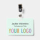 Personalize nosso crachá de nome plástico PVC profissional com o logotipo da sua empresa, nome do funcionário, título do trabalho ou outro texto personalizado. Disponível com um pátio, clipe de metal ou bobina retrátil. Projetado em verde-menta e outras cores com uma design moderna minimalista do MISOOK. Todas as cores são personalizáveis. As dimensões são de 3,38 polegadas x 2,13 polegadas. Nenhuma quantidade mínima de ordem e nenhuma taxa de configuração. Todas as encomendas são satisfeitas pela Zazzle em produtos do Zazzle. O MISOOK NÃO tem suas informações de personalização, envio ou cartão de crédito, portanto entre em contato diretamente com a Zazzle para fazer perguntas, inclusive sobre como personalizar seu design.