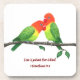 Porta copos de plástico personalizável com rolha traseira, apresentando a imagem de dois pombinhos que foram feitos a lápis coloridos e mostram um verso inspirador. Excelente por colocar seu copo e ser lembrado da verdadeira natureza do amor.