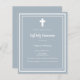 Fundo azul empoeirado, decorado com um quadro branco, e uma cruz branca Personalize e adicione o nome e os detalhes. Texto branco. 1 folha = 1 convite impresso de borda a borda.