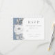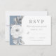 Um cartão de resposta floral elegante e moderno com um belo arranjo diamante de flores aquáticas em tons cinzas sobre um elegante fundo azul empoeirado. O verso do convite apresenta um delicado padrão de diamante que complementa a forma de diamante na frente. Podemos personalizar as cores das flores para combinar com o tema do seu casamento; basta nos contactar no modernmatrimony(at)gmail(dot)com e permitir uma semana de personalização.