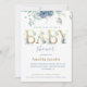 O Dourado Blue Watercolor Floral Chá de fraldas Invite é um design muito elegante que inclui grandes letras douradas dizendo BABY decorado com florais de cor azul pastel e poeirenta. O mesmo estilo de florais decora o topo e o fundo do cartão. O texto à frente é perfeitamente personalizável. A parte de trás é uma lavagem de aquarela azul.
