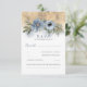 Dourada brilho e poeirento flores azuis buquê cor d'água cartões de resposta do casamento