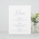 The design features a refined calligraphy Menu heading paired with classic serif typography for each course, creating a clean and luxurious look.