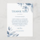 Dusty Blue Floral Casamento Obrigado Cartão de Lug