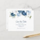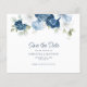 Casamento elegante de buquê floral azul empoeirado, branco e marinho floral, salve a data com o cartão de código QR. O cartão apresenta um script "Salvar a Data", que pode ser alterado para um tipo de fonte de sua escolha, disponível aqui quando você clica no botão "Personalizar". Adicione seu site de casamento e o Código QR no verso para que seus convidados possam manter-se atualizados com seus planos