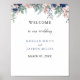 Poster de Boas-vindas do Casamento Geométrico de Dusty Blue Floral. Este elegante e personalizável feitiço de casamento e rosa-claro-claro com florais azuis botânicos tem folhas de cor aquosa de eucalipto. Para fazer alterações antecipadas, selecione a opção "Clique para personalizar mais" em personalizar este modelo.