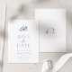 Anuncie seu dia especial em estilo com este elegante e empoeirado floral azul Salve o cartão de Data. Apresentando delicadas flores aquáticas em tons azuis suaves e tipografia serif clássica, esta design é perfeita para casamentos românticos, eternos ou inspirados no jardim. Totalmente personalizável com seus detalhes, ele define um tom gracioso para sua celebração e permite que seus convidados saibam marcar seus calendários.