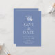 Anuncie seu dia especial em estilo com este elegante e empoeirado floral azul Salve o cartão de Data. Apresentando delicadas flores aquáticas em tons azuis suaves e tipografia serif clássica, esta design é perfeita para casamentos românticos, eternos ou inspirados no jardim. Totalmente personalizável com seus detalhes, ele define um tom gracioso para sua celebração e permite que seus convidados saibam marcar seus calendários.