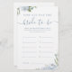 Entretenham seus hóspedes com essa diversão de quantos anos tinha o jogo da noiva, apresentem uma cor d'água romântica floral em azul empoeirado e verde-sábio, e um roteiro moderno, simples e elegante, excelente para o chá de panela do livro moderno, festas de casamento do jardim botânico. Veja todos os jogos de chá de panela na coleção.