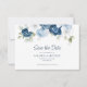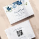 Casamento elegante de buquê floral azul empoeirado, branco e marinho floral, salve a data com o cartão de código QR. O cartão apresenta um script "Salvar a Data", que pode ser alterado para um tipo de fonte de sua escolha, disponível aqui quando você clica no botão "Personalizar". Adicione seu site de casamento e o Código QR no verso para que seus convidados possam manter-se atualizados com seus planos