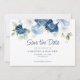 Casamento elegante de buquê floral azul empoeirado, branco e marinho floral, salve o cartão de data. O cartão apresenta um script moderno "Salvar a Data", que pode ser alterado para um tipo de fonte de sua escolha, disponível aqui quando você clica no botão "Personalizar".