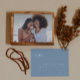 Apresentando nosso incrível azul empoeirado | matriz fotográfica desbotada de cartão de honra perfeita para a sua simples celebração do primavera boho. Nosso elegante design inclui uma paleta de cores vibrante brilhante e pastel com um script de caligrafia quic vintage. Quer você prefira um estilo minimalista ou clássico, nosso produto editável exclusivo oferece luxo e elegância, perfeito para criar um toque clássico, ainda que romântico, para tornar seu dia especial inesquecível. Contacte-nos com quaisquer perguntas sobre o design, e deixe-nos ajudá-lo a fazer o casamento dos seus sonhos.