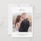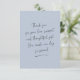 Uma mensagem especial de amor e obrigados para seus convidados. Apresenta uma mensagem manuscrita no estilo de script sobre fundo azul empoeirado. As costas são destacadas com sua foto de casamento, sentimento, nome e data.