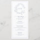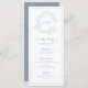 Dusty Blue Leafy Crest Monograma Menu Casamento