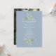 Apresentando delicada cor-de-água verde em um fundo azul empoeirado, este cartão de anúncio botânico chic pode ser personalizado com sua foto especial e detalhes do dia do casamento. Projetado por Thisnotme©