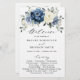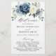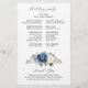 Cartão azul-poeirento do programa de casamento floral, com buquê elegante de azul marinho, azul-real, branco, ouro, marfim de champanhe, rosa de cor azul-claro, botões de flores ranúnculus e folhas de eucalipto verde-sábio e buquê de cor-de-água elegante. Entre em contato comigo para obter ajuda sobre a personalização ou se você precisar de outro produto com este design.