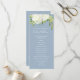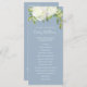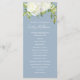 Um elegante programa de casamento floral com um belo arranjo de flores brancas e cor-de-água, de pedras brancas e verde. Mostrada com uma cor azul empoeirada de fundo que pode ser personalizada para corresponder ao seu tema de casamento. Basta selecionar o botão 'personalizar' para ver opções adicionais de design.