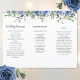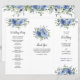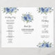 Estes programas de casamento apresentam um design botânico moderno a aquarela com rosas azuis empoeirados, flores e folhagem de eucalipto. Terá de os dobrar ao longo das linhas. Personalize com seu texto. Produtos correspondentes disponíveis.