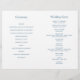 Esta Folha do Programa Casamento Bi-Fold contém texto na moda elegante em azul empoeirado sobre fundo branco. Personalize o texto conforme apropriado, usando o modelo de personalização on-line antes de fazer o pedido. Se você quiser ajustar o layout, role para baixo no modelo de personalização on-line e clique no botão "Editar usando a ferramenta Design" na parte inferior. NOTA: O tamanho refere-se à folha do programa ANTES de ser dobrada. A folha chega desdobrada, sem dobras, então precisaria ser dobrada ao meio antes de ser usada.