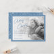 Azul empoeirado com um pop de florais no fundo, este salva o cartão com fotos da data é perfeito para um casamento botânico azul empoeirado. Use o modelo simples para editar o texto e adicionar sua foto. Não se esqueça de consultar a loja da EmmyINK para coordenar papel de carta de casamento botânico azul empoeirado e decoração!