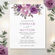 Estes convites para o casamento apresentam um design floral de cor aquosa moderno com massa empoeirada, roxo, flores escamosas, bagas, folhas e folhagem. Personalize com seu texto. Material de papelaria correspondente também disponível.