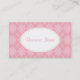 Um padrão empoeirado de argila cor-de-rosa decora este cartão de visita profissional. Personalize esta cartão de visita moderna para atender às suas necessidades. Alterar o texto, o tamanho da fonte, etc... Adicionar ou eliminar texto. O design é de arte original. Use este cartão de visita profissional para uma butique, padaria, creche, creche, alterações, padaria, florista, cosmetólogo, nomeações, cabeleireiro, salão, salão, salão de unhas, decoração caseira, acessórios, moda, joalharia, etc..