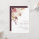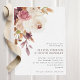 Um bonito convite para o casamento que inclui um grande arranjo de flores aquáticas em marfim, rosa poeirento e berinjela. O inverso está na beringela sólida.