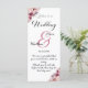 Esta Placa do Programa de Cerimônia de Casamento de Script Moderno Floral Dusty Pink Boho pode ser facilmente personalizada adicionando seus próprios detalhes.