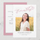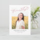 Este anúncio de graduação moderno mostra a palavra finalmente escrita em rosa empoeirado sobre uma foto de solteiro. A parte traseira do cartão pode ser usada como texto adicional ou como convite.