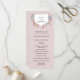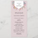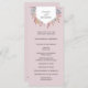 Os detalhes da sua cerimônia são tocados por um falso elemento geométrico de folha de cobre coberto com folhagem de cor-de-água verde e flores cor-de-rosa, com seus nomes dentro, neste elegante programa de casamento botânico. Os membros da sua festa de casamento estão listados do outro lado em espaços de texto facilmente editáveis. Vai bem com nossos convites para casamento de Wildflower. Adicione seus detalhes da cerimônia e da festa noiva nas caixas de modelo e clique em "Personalizar" para realocar os componentes conforme necessário.