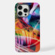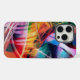 A vibrant explosion of colors and dynamic lines creates an abstract composition full of energy and movement. The interplay of bright hues and sharp angles draws the eye in various directions, creating a sense of depth and complexity.