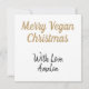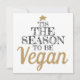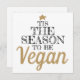 Este cartão branco de saudação de Natal apresenta uma legenda preta e dourada em fontes modernas que diz 'Esta é a estação para ser Vegan, e é decorada com uma pequena estrela ouro. O verso é personalizável com suas saudações e seu nome.