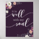 Design de tipografia com caligrafia e palavras em branco sobre fundo roxo escuro, "É bem com minha Alma." O design de tipografia está centrado em lindas e coloridas flores aquáticas (flores coloridas ilustrativas aparecem nos cantos superior esquerdo e inferior direito do design).