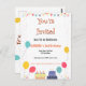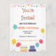 É Hora da Festa! Crie emoção para a celebração do seu aniversário com convites de festa temáticos de balões brilhantes e coloridos! Este convite colorido apresenta as palavras ‘É Hora da Festa’ e Você é Convidado com balões festivos, estrelas e pontos em confete.