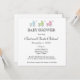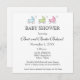 É um convite para Chás de fraldas de tripletes com três carruagems de bebês de cor pastel. Projetado por Donna Gotlib.