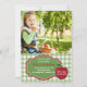 Um padrão de xadrez verde e branco nítido é sobreposto por uma maçã grande e vermelha. Adicione uma foto favorita e deixe seus convidados saberem que foram "escolhidos" para ajudá-lo a celebrar. Padrão de Stockvault.net. Foto de mobifire.com.