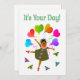 Uma charmosa moça afro-americana, cercada por balões em forma de coração e borboletas proclama que é o seu dia neste divertido cartão de aniversário. Edite o texto com sua mensagem pessoal e ele se torna um cartão de todas as ocasiões!