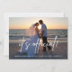 Nossos anúncios de casamento modernos e elegantes são a maneira perfeita de informar amigos e familiares sobre sua fuga, cerimônia secreta ou casamento íntimo! "É Oficial" é sobreposto em letra manuscrita branca no estilo pincel sobre sua foto favorita em formato horizontal ou paisagem. Personalize com seus nomes e datas de casamento, além de uma mensagem pessoal no verso