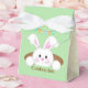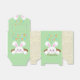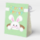 Este belo coelho branco está se espantando para ver se a Páscoa está aqui. Os painéis frontal e traseiro mostram o coelho da Páscoa. Acima há faixas que leem "FELZ PASCOA". Os dois painéis laterais são beges com padrão floral.