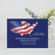 Se você está planeando um Memorial Day ou um quarto da celebração de julho, este convite mostrará seu patriotismo. O fundo azul profundo caracteriza um mapa dos E.U. drapejados na bandeira americana. O cartão é fácil de personalizar com seus fraseio, pia batismal, cor da pia batismal e escolha de seis tipos de papel.
